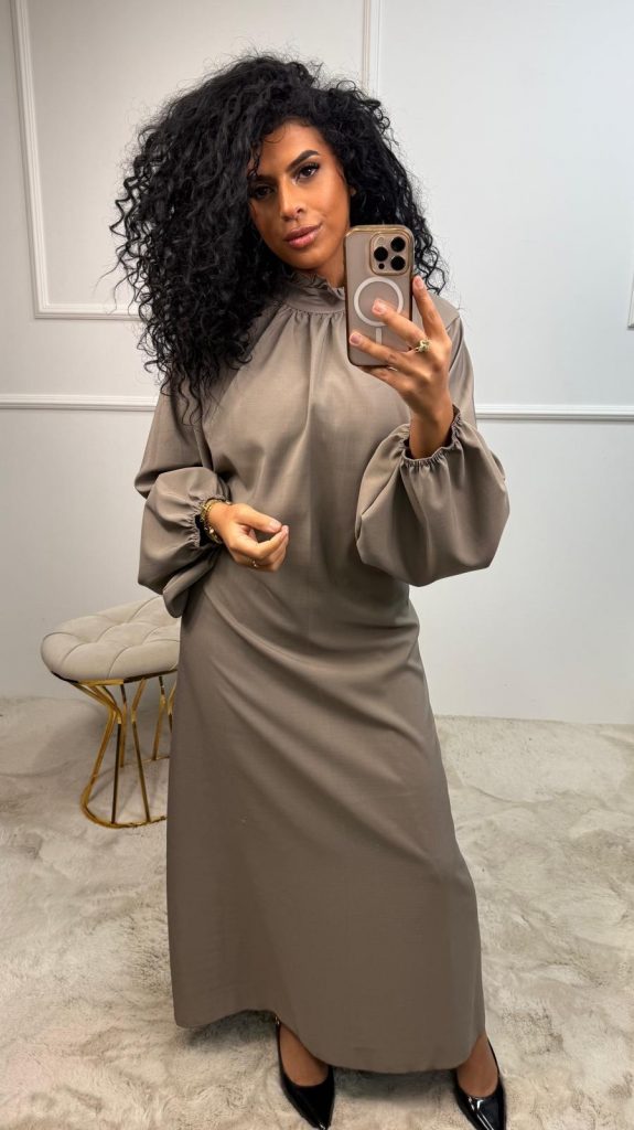 Voor vrouwen die een verfijnde halslijn verkiezen, bieden abaya’s met hoge kraag een koninklijke uitstraling zonder het ontwerp te overbelasten. De strakke verticale lijn creëert lengte en elegantie.
