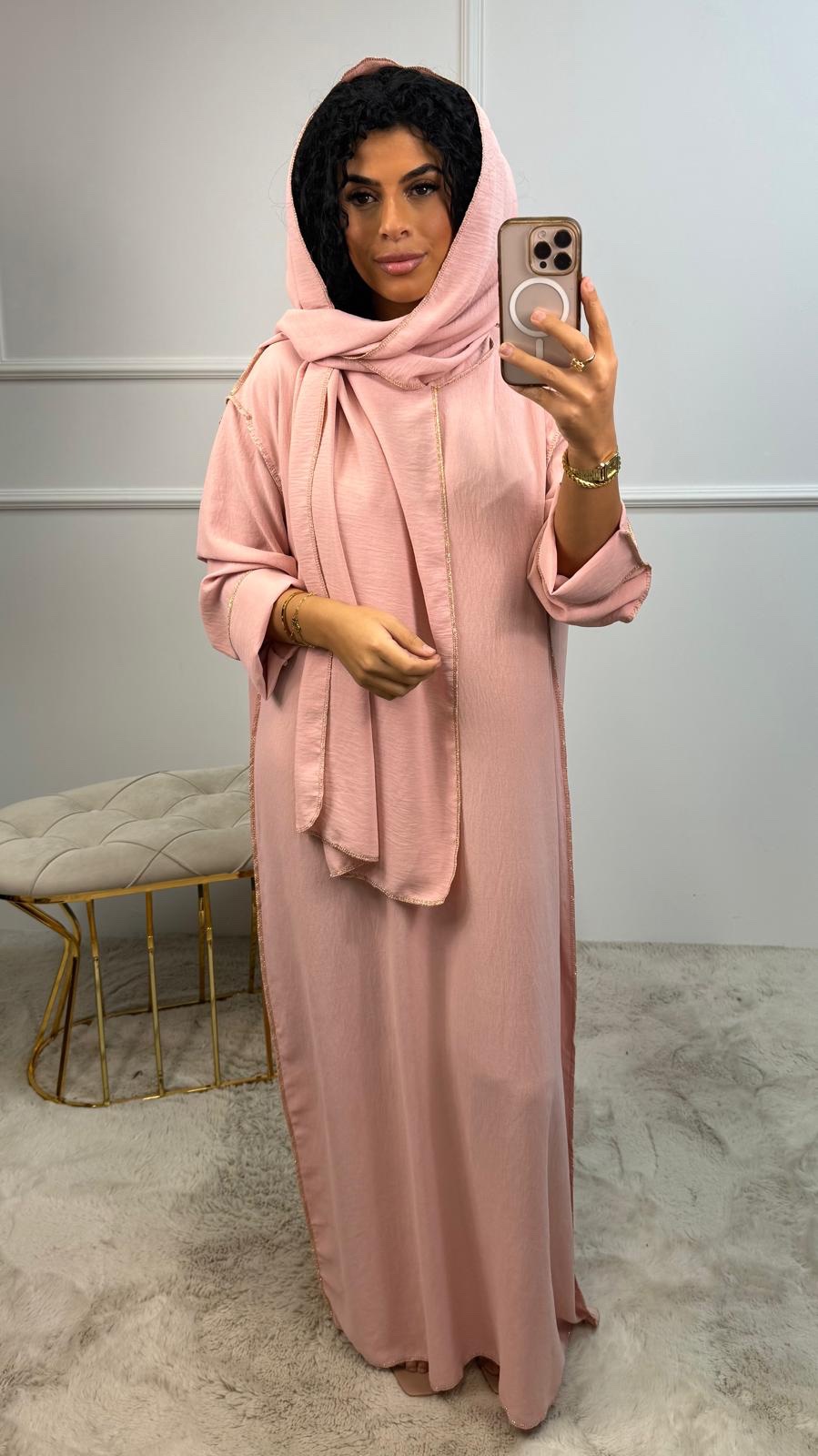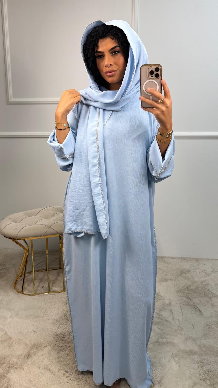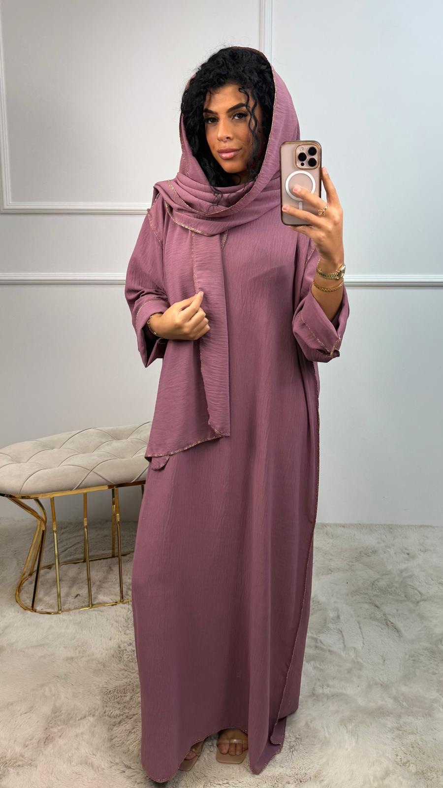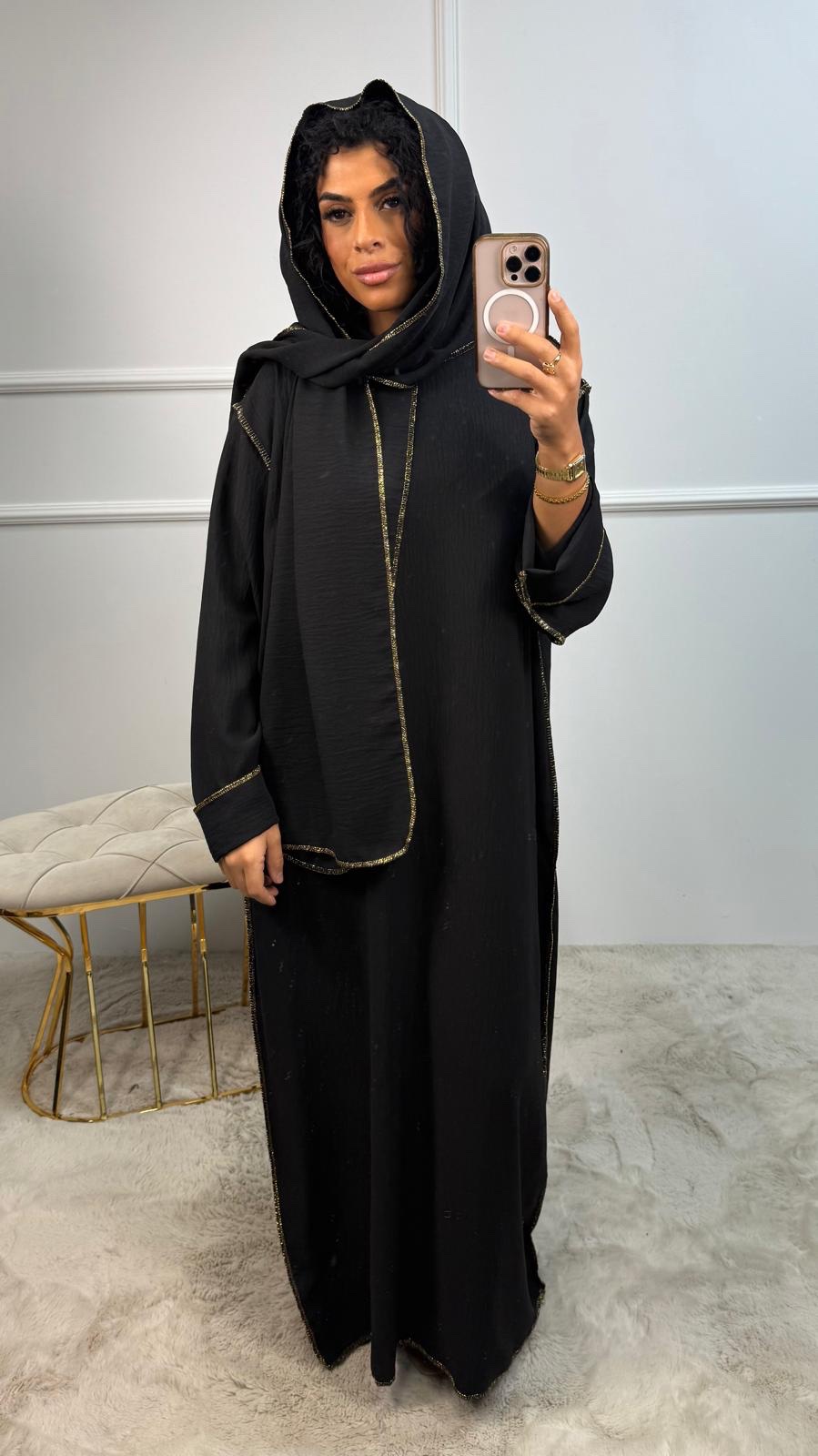 Met de Essia Trending Gouden Detail Abaya kies je voor een modest outfit die moderne elegantie met klassieke klasse verenigt — moeiteloos chic en altijd on‑trend.