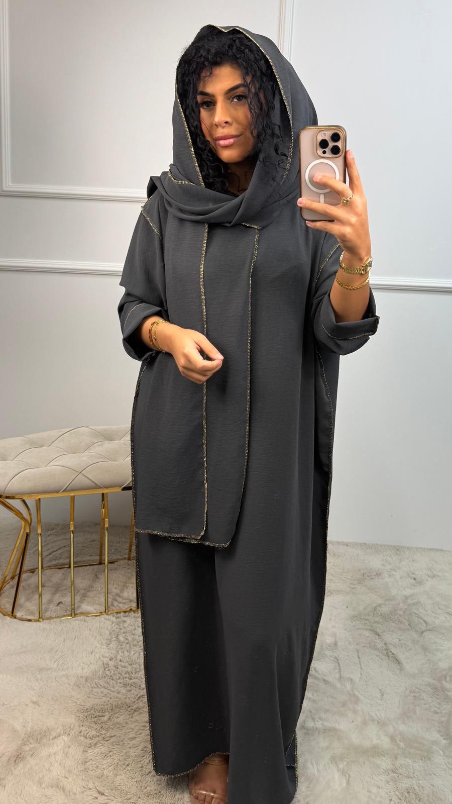 Elegant, chic en onweerstaanbaar on‑trend. De Essia Trending Gouden Detail Abaya is een must‑have voor vrouwen die stijl en moderne modest fashion willen combineren.
