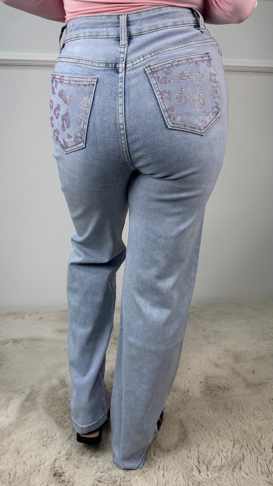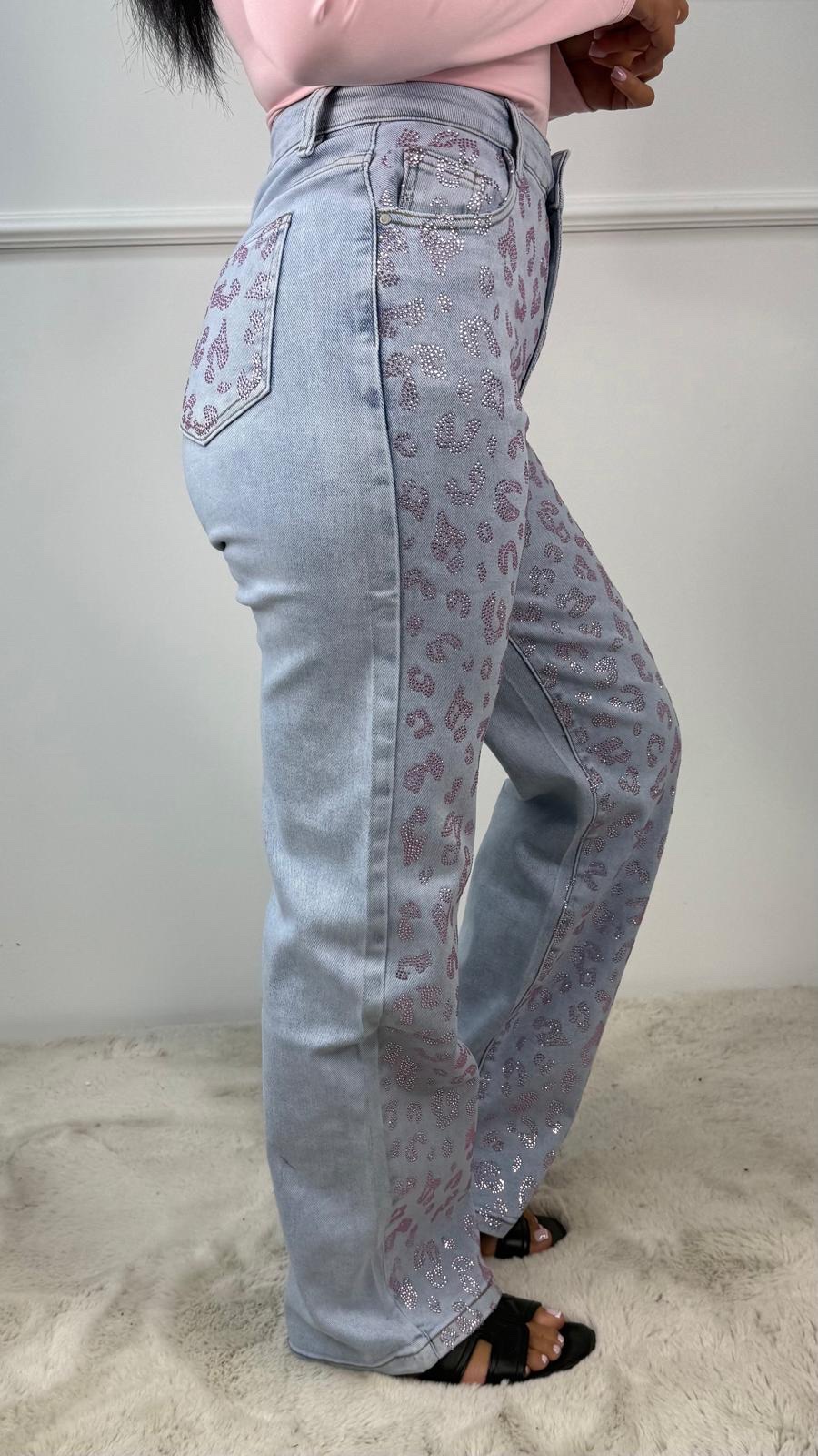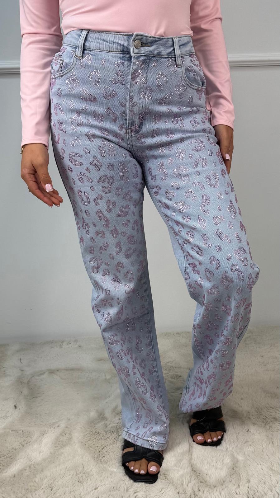 Premium Quality Stretch Glitter Luipaard Spijkerbroek Roze F15791