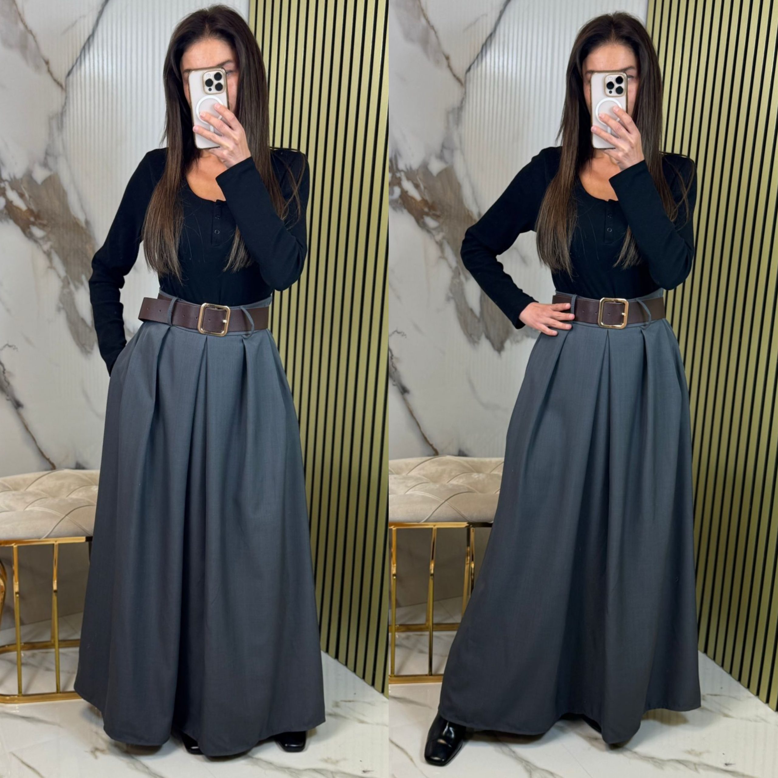 Shaida Plooi Rok Riem – Donker Grijs